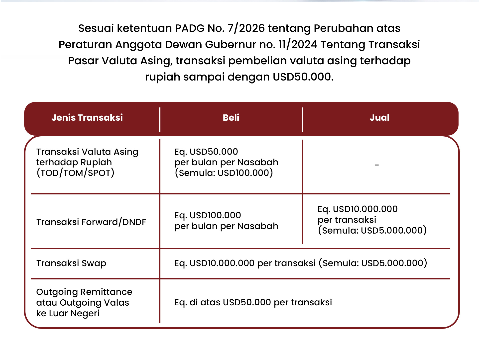 Informasi Penyesuaian Threshold Transaksi Valuta Asing (Valas)
